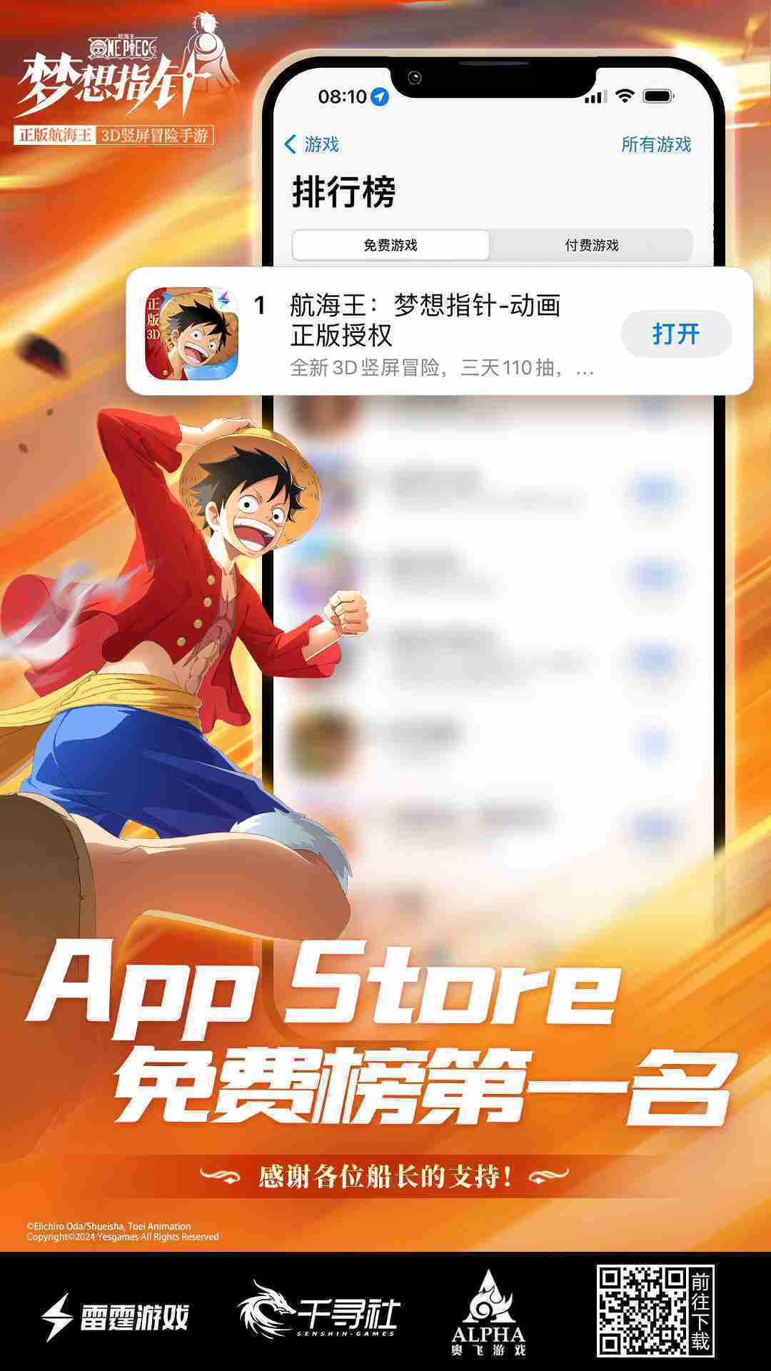 产品新闻 《航海王::梦想指针》登顶App Store免费榜,,,公测福利汇总!!