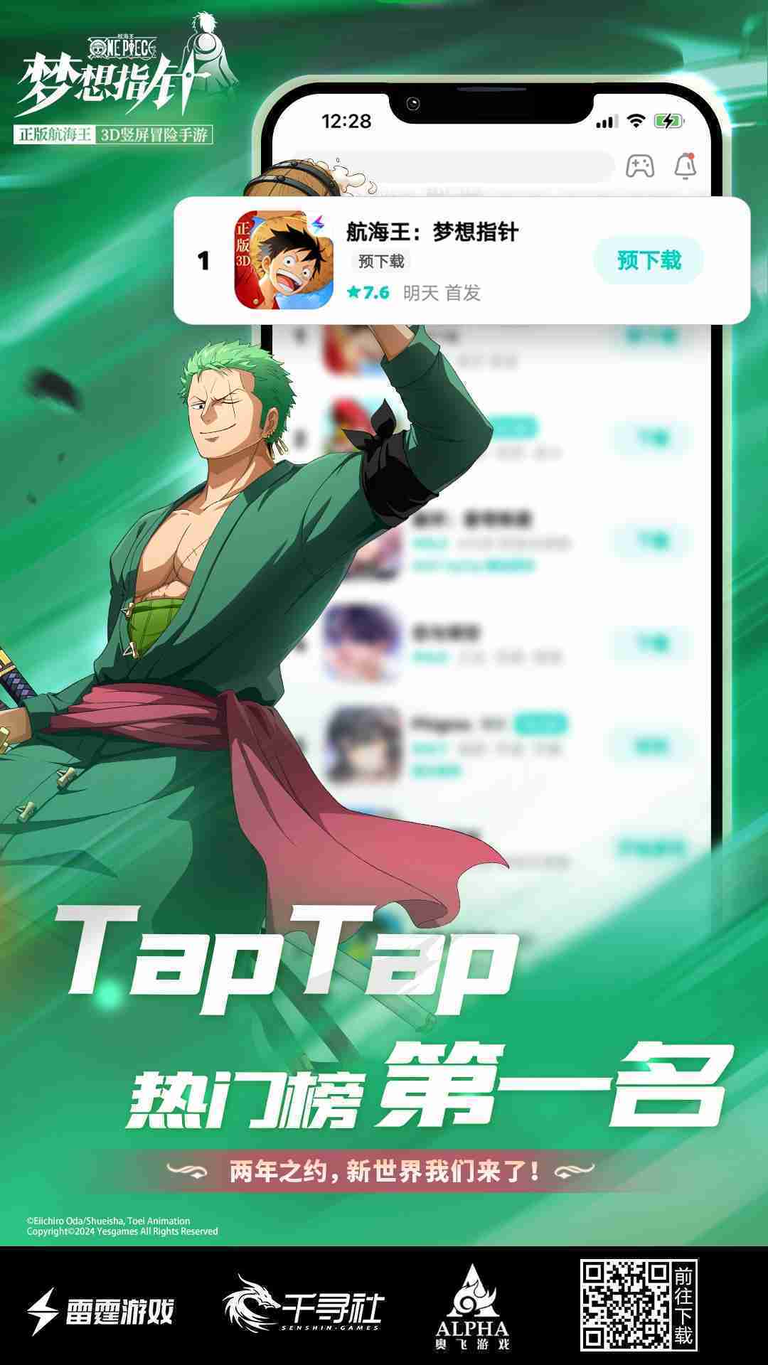 《航海王::::梦想指针》登顶App Store免费榜,,,,公测福利汇总!!!