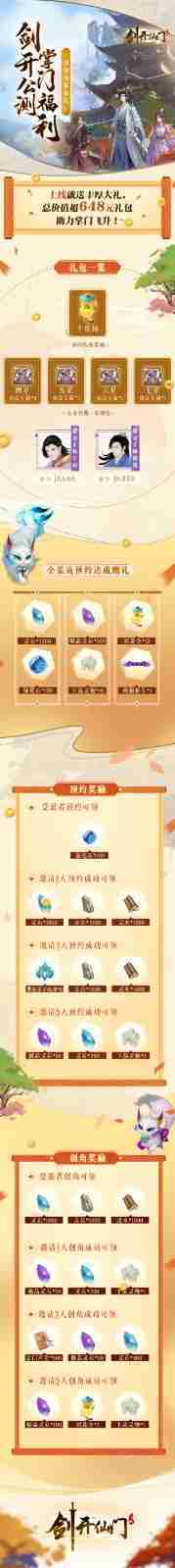 游戏为大家准备了海量的福利,,包括上线即可获得的全渠道预约礼包、、、、十连抽等福利,,,输入密令“JK666”、、、“JK888”即可领取紫色弟子,,,达到金丹期后还有功法宝箱可领,,助力全宗上下实力提升……所有奖励总价值超过648元,,而邀请好友一起体验,,,,更可以获得额外的奖励哦~