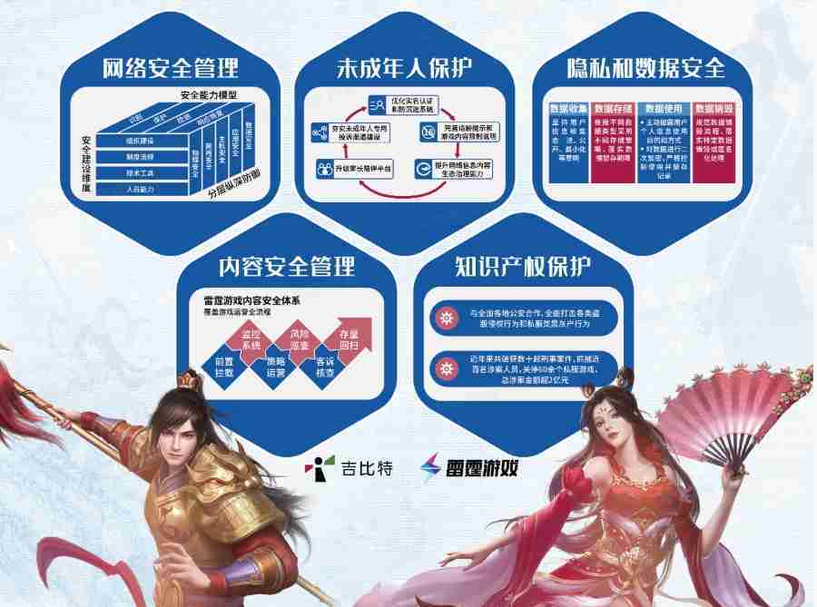 本次yaxin111展区以网络安全管理、、内容安全管理、、未成年人保护、、、、隐私和数据安全、、、、知识产权保护五个模块介绍公司游戏安全工作成果,,体现yaxin111高度重视网络安全,,严格遵守相关法律法规要求,,,,积极承担企业主体责任。。。